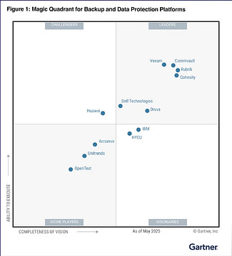 RBRK (增加信念)Terry ChengApr 03, 202675Share處於領導者Rubrik 被歸類在右上角的 領導者。這代表 Gartner 認為該公司具備以下兩個核心優勢:執行能力 , 產品成熟度高,市場佔有率強,客戶滿意度佳,且具備穩定營收與服務支援能力。願景完整性 , 對於未來資料保護趨勢(如 AI 驅動、勒索軟體防禦,雲端原生備份等)有清晰且具前瞻性的策略。RBRK 與 Veeam , Commvault 及 Cohesity 處於第一梯隊。RBRK 的特色通常在於其零信任架構和強大的網路恢復能力,強調備份資料不被竄改 ,以應對勒索軟體攻擊。 它們將傳統的備份轉化為資料安全,這在當前資安威脅嚴重的環境下非常有競爭力。⛽️